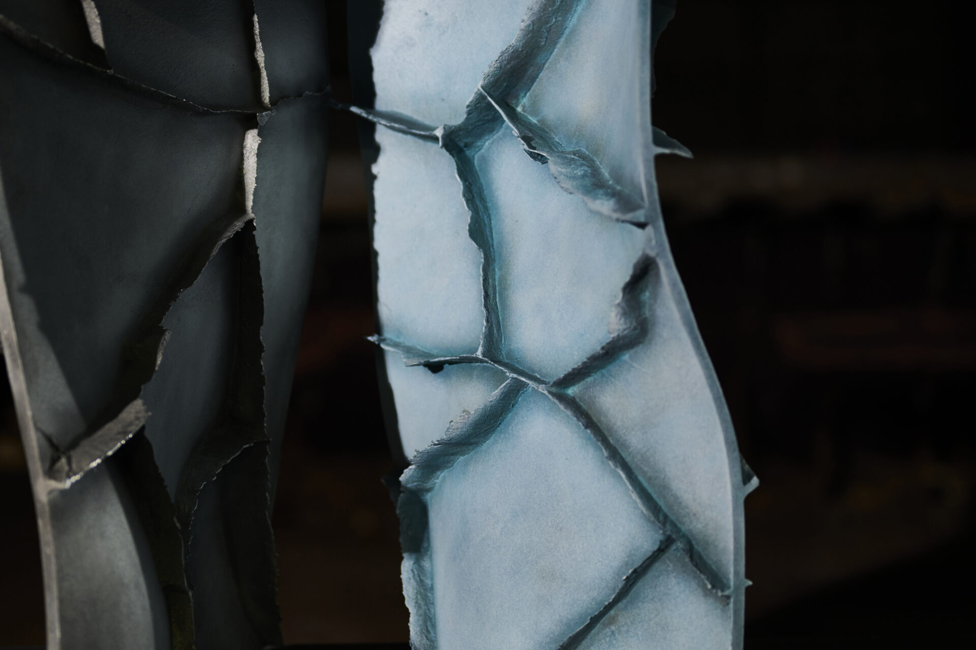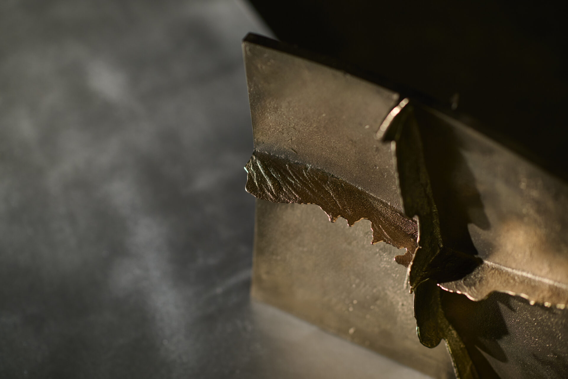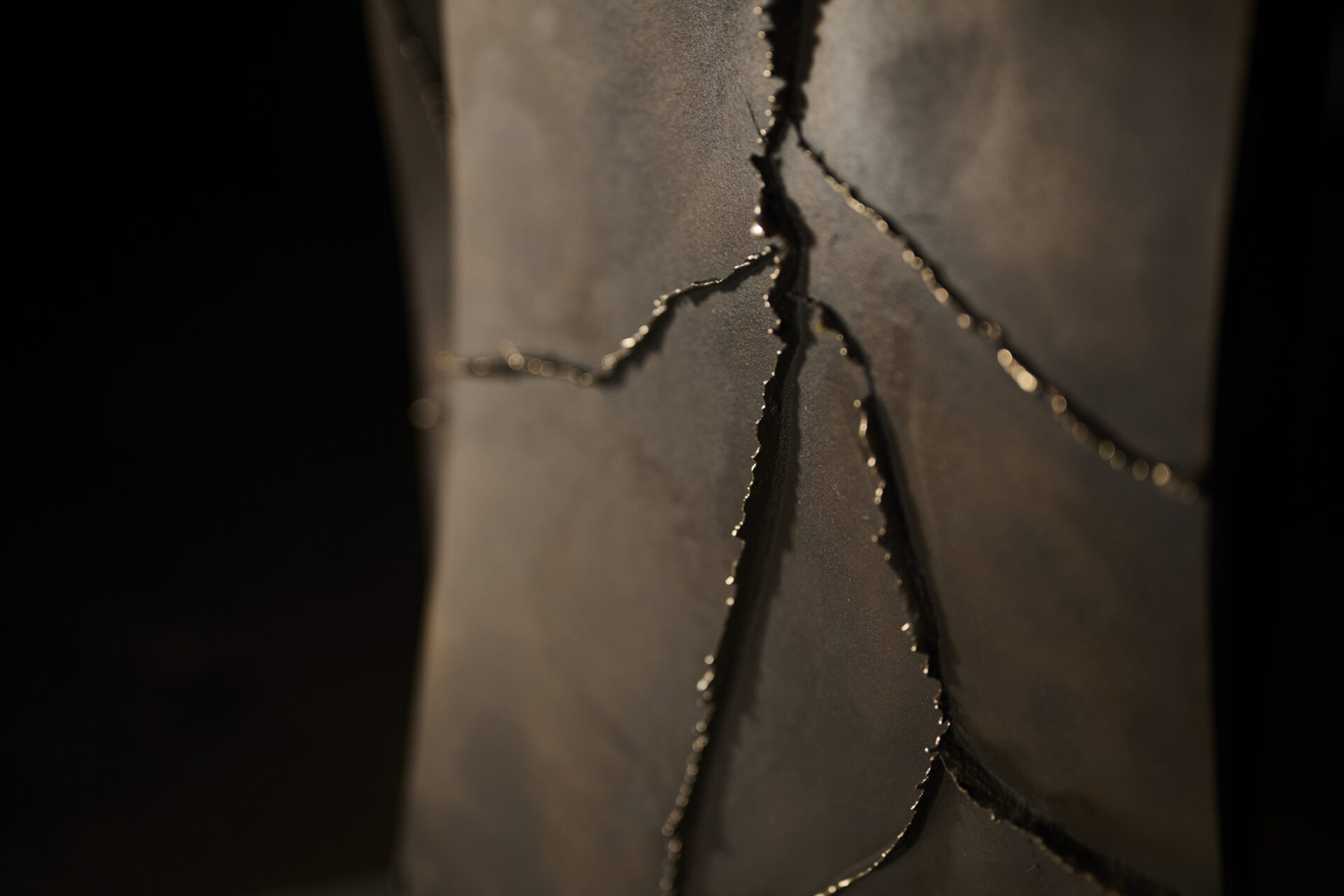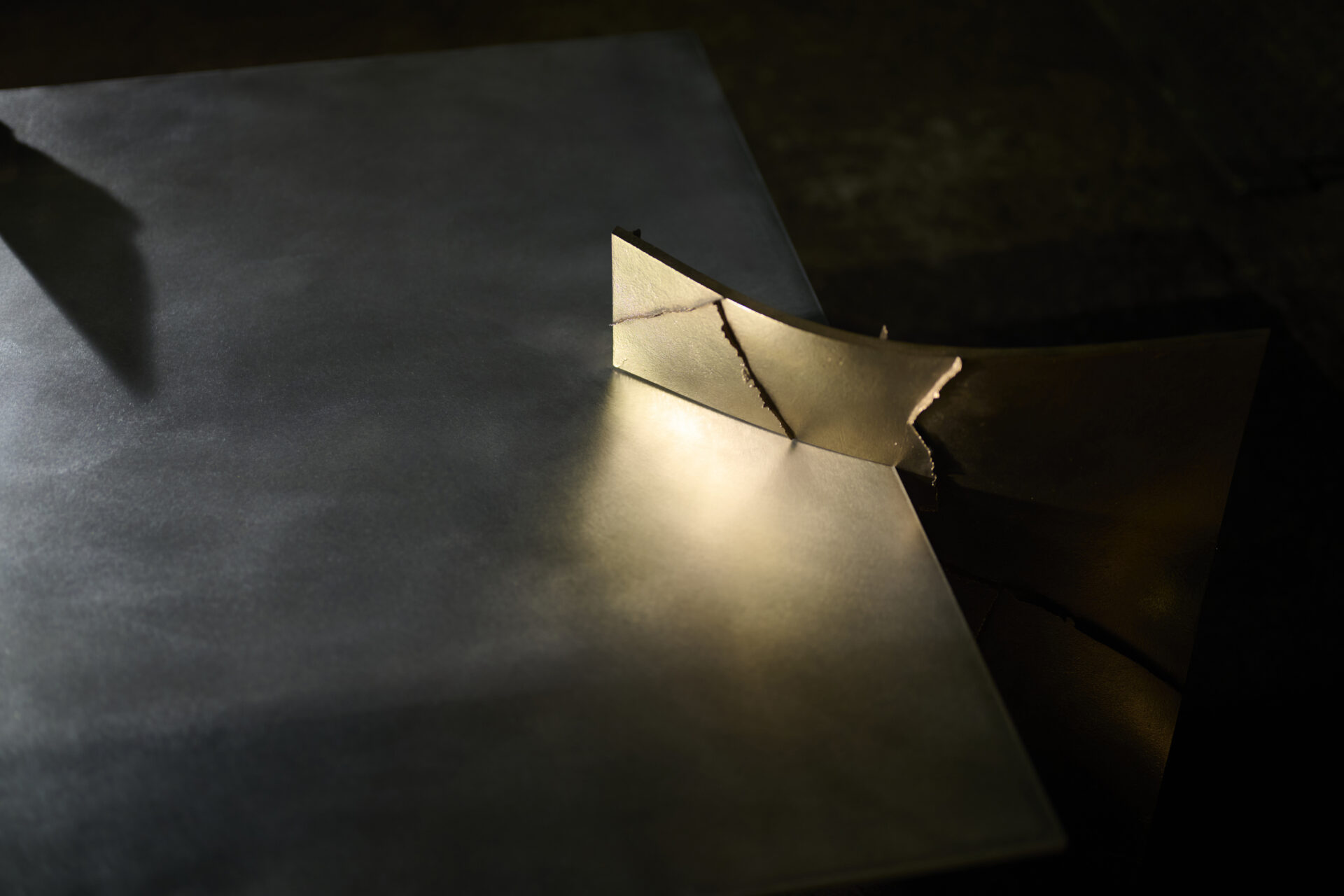 高度な鋳造技術の本質を可視化し、鋳物の鋳造プロセスや道具、素材のふるまいなど、これまで⾒過ごされてきた鋳造⽂化の価値を再定義する「Unseen Objects」の家具コレクションです。we+が平和合金の鋳物工場にて、鋳造プロセスや道具、素材のふるまいを丹念にリサーチ。その中で、金属が凝固する過程で生じ、通常は除去される「バリ」と呼ばれる造形に着目しました。大型鋳物の鋳造に用いられる砂型(砂を材料とする鋳型)は、原型の形やサイズに応じて複数のパーツに分割してつくられますが、溶けた金属が流し込まれ、固まる過程で、それらの継ぎ目から溢れ出る余剰物がバリです。通常は、仕上げ工程で除去されますが、本プロジェクトでは鋳造プロセスから自然と立ち現れる物質の痕跡として捉え直しました。生成されたバリのパネルを積層し、板材を挟むことで、シェルフやローテーブルを構成。制御された工程の中に宿る物質の生命力を、家具に転写することを試みています。
