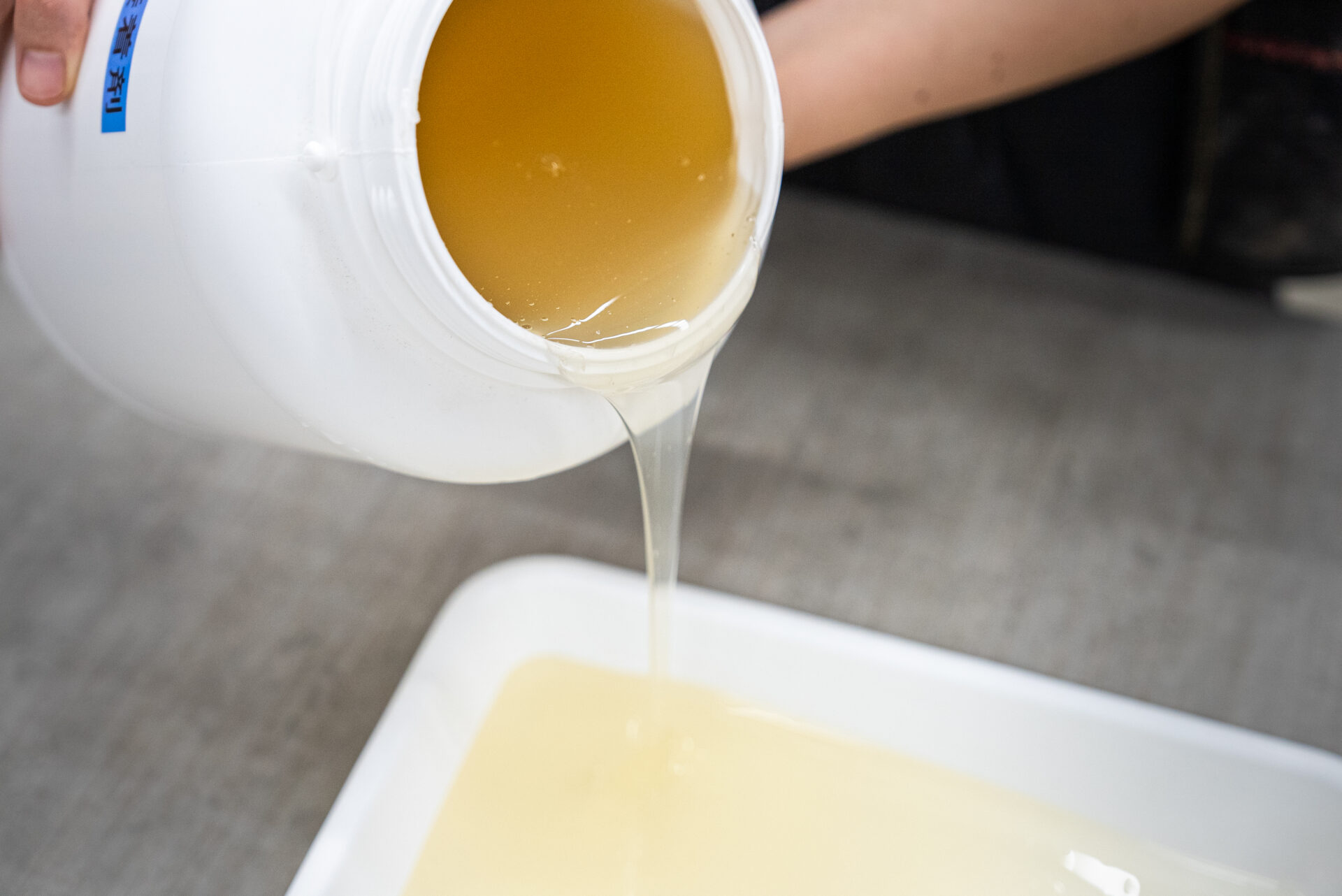 When we create something, do we also design how it can be taken apart and returned? Starting from this question, we developed a seaweed-derived adhesive that combines strong bonding performance with the ability to be easily dissolved and removed with water. In conventional spatial design, adhesion has been an irreversible act. The stronger the bond, the more difficult it becomes to separate, reuse, or properly dispose of materials after use—ultimately limiting the possibility of circulation. Focusing on sodium alginate, a viscous compound extracted from seaweed—an abundant yet underutilized resource in Japan as a maritime nation—we developed a natural adhesive that firmly bonds materials such as wood and paper, while allowing for clean separation when exposed to water. By rethinking adhesion not as a technique for fixing, but as a design that inherently includes the possibility of release, LOOPGLUE proposes a new ecology of making—where creation and return coexist without contradiction.